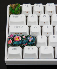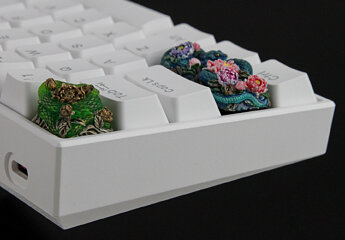I used the Anne Pro 2 keyboard to demonstrate the keycaps installed, with its white base allowing for good contrast and the spotlight given to the keycaps themselves. There is a reason this series of artisan keycaps is not offered in OEM or Cherry profiles, as evident by the naked profile versions already being taller than the OEM keycaps surrounding them. This is because the snake and flower elements are fairly prominent, and the various layers add up to making a relatively tall keycap. The SA profile version would not be much taller than this, for what it is worth. This is also why it's best to match these keycaps with your keyboard, especially if this is going on a key you will be using often. Using a keyboard with backlighting, especially per-key RGB lighting, will also allow you to get the base layer to shine through as preferred. This keycap series has only two profiles, but makes up for it with 9 different designs. There are three sizes available, including the large spacebar key which looks absolutely stunning from the photos on the website, as well as larger art toys if you simply want to admire the art on a bigger scale as opposed to using them on a keyboard. Pricing ranges from $55-102 depending on the keycap size, and you can find more details on the group buy page.